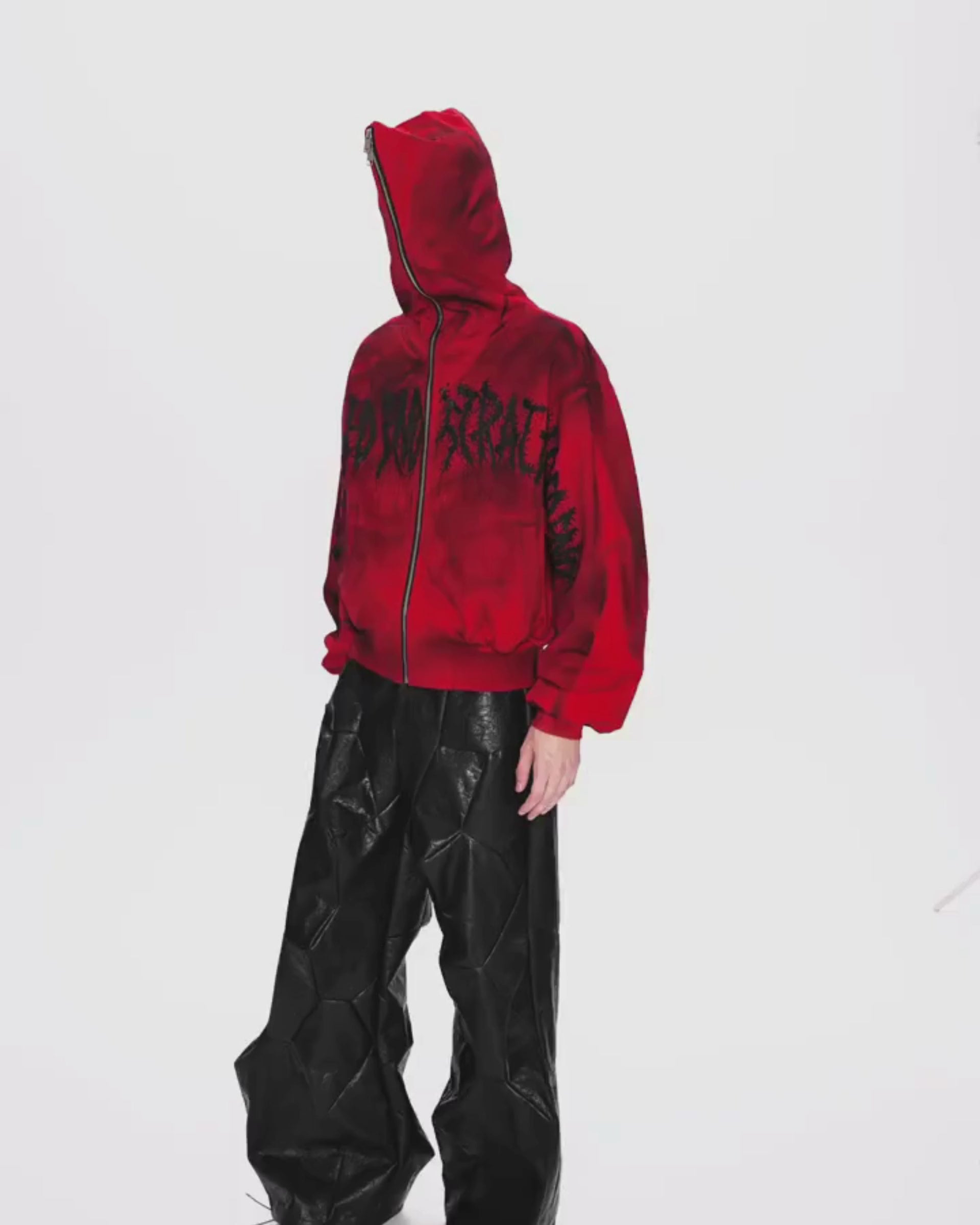 Unleashing a brutalist aesthetic, the Apocalypse Zip Hoodie fuses metalcore graphics with oversized streetwear proportions. Crafted in a heavyweight cotton blend, this piece features splatter-dye effects across the entire body and sleeves — creating a scorched, blood-soaked texture.